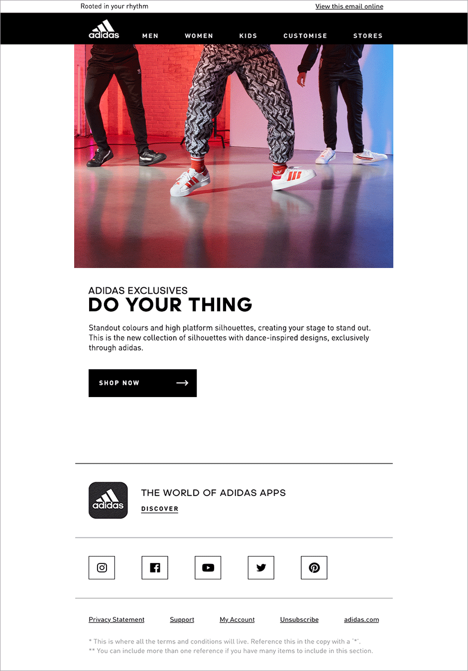 Art direction and design for the adidas Exclusives Dance Pack Campaign. A K-Pop inspired neon set is the backdrop for product photography captured in motion. The campaign was launched in Europe and North America across adidas digital platforms.